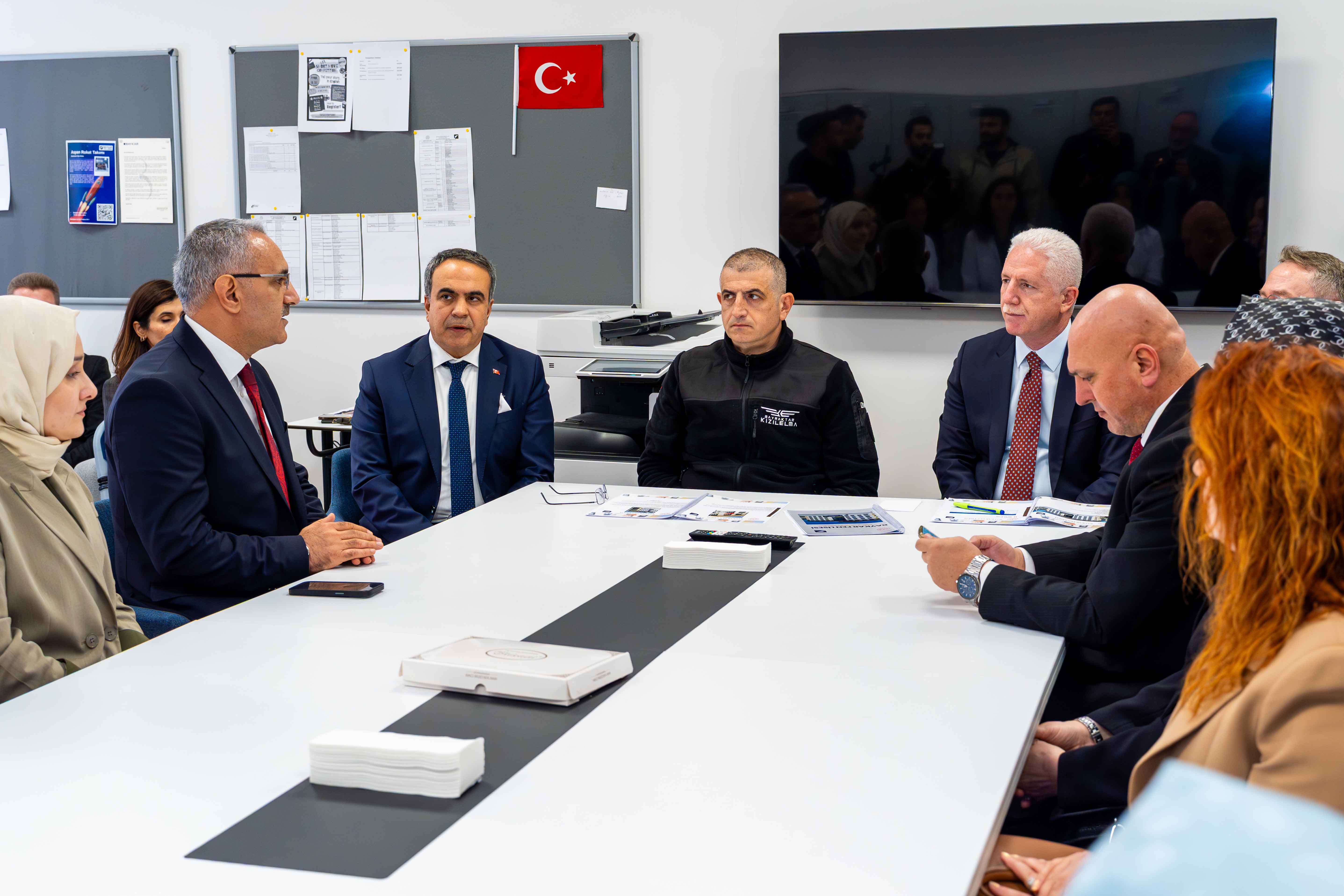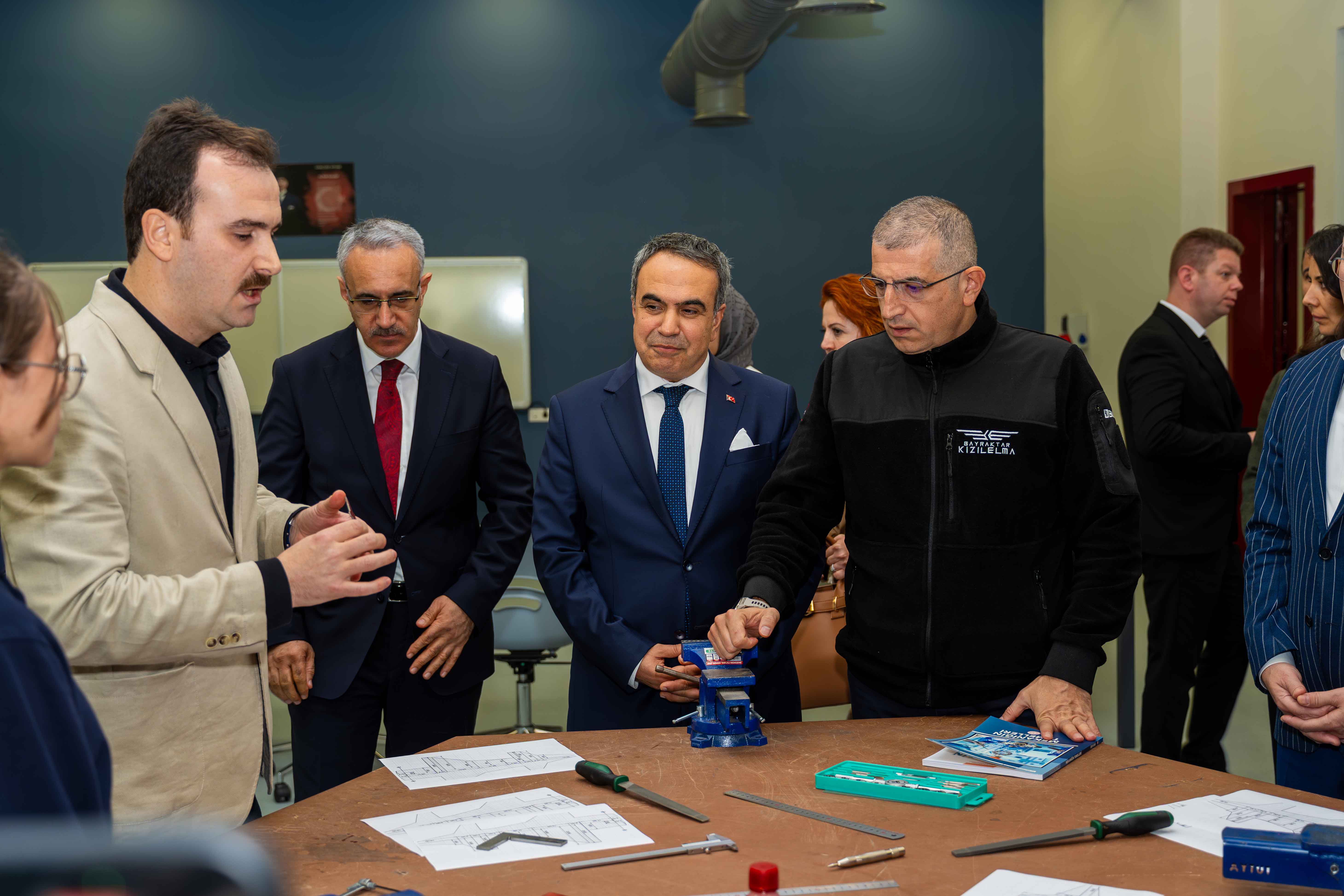 Program sırasında ana bina, atölye binası ve yurt binasında detaylı incelemelerde bulunuldu; atölyelerimizde yürütülen robotik, yapay zekâ ve mühendislik çalışmalarına ilişkin sunumlar gerçekleştirildi.